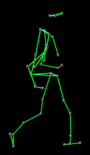 This component visualizes 3d objects in space and time. It is used to show a 3d-stick-figure for marker based motion analysis. But it is also possible to show arbitrary 3d objects like planes, spheres or bones. The scene can move with the time correspondig to the global time position defined by the Time Synchronization component. Different views of the same scene at time are possible and a lot of specific 3d objects e.g. to visualizate the ground, force plates, bottom of support areas, segments centre of mass points, … are available.